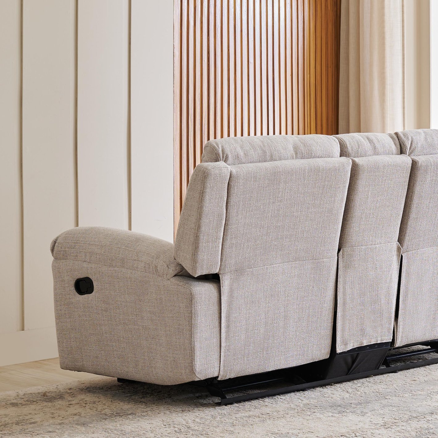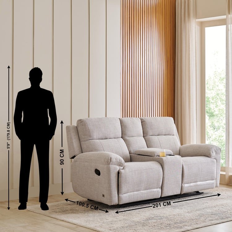 Relax in style and comfort with this 2 seater recliner. Crafted from a durable pine and plywood frame, it features polyester upholstery. The seat combines HDR PU foam and soft foam for a semi-soft seating experience. Equipped with a manual recline mechanism tested for 25,000 cycles, it ensures smooth functionality. The console offers convenient storage and twin cupholders, keeping essentials within reach.