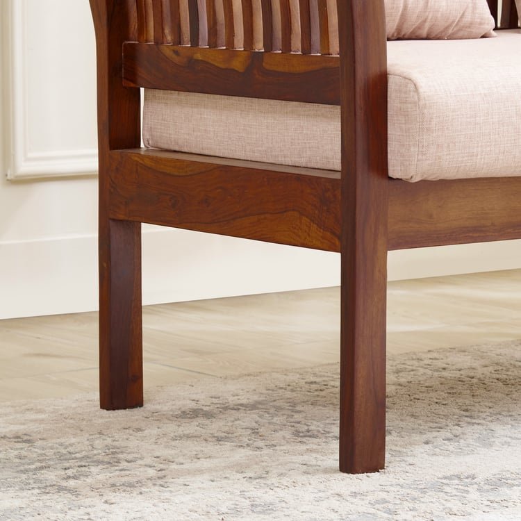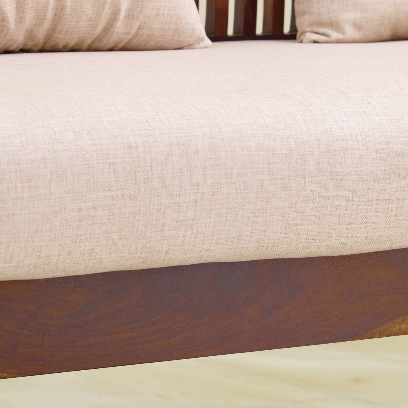 This Home Centre sofa set offers a blend of durability and style. Made from kiln-dried and chemically treated sheesham wood, it’s suited for indoor use and withstands seasonal climate changes. The sofa has robust laminated wooden legs for extra strength. Its semi-soft seat, constructed with HDR PU foam and softy foam, provides moderate comfort and resilience. The polyester fabric enhances its aesthetics, and the set includes cushions for added style and comfort.