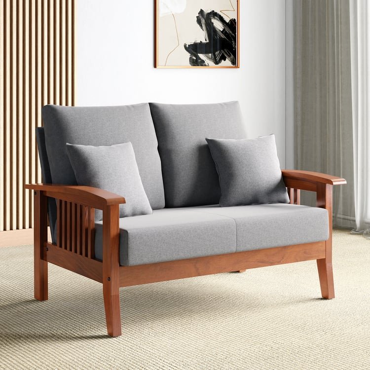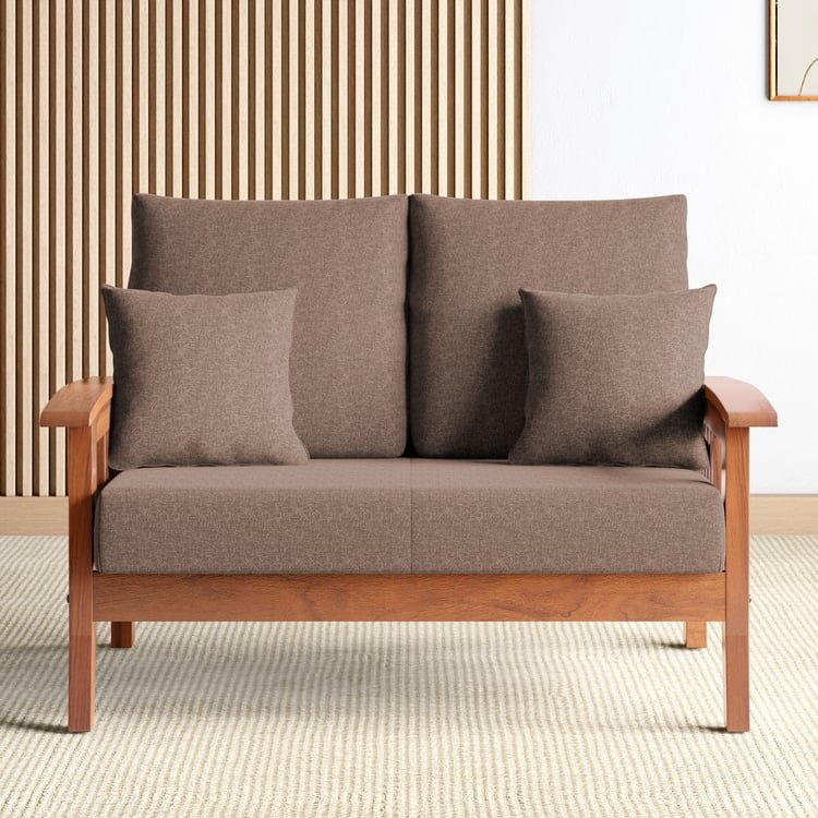 Elevate your space with the perfect blend of elegance and modern comfort with this stylish 2-seater sofa. Designed to complement any decor, it is upholstered in polyester fabric and padded with PU foam for maximum comfort. Made from resilient rubber wood, the frame is renowned for its strength and fire-resistant properties, making maintenance a breeze. The included cushions enhance its visual charm.