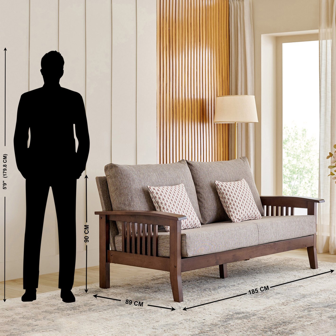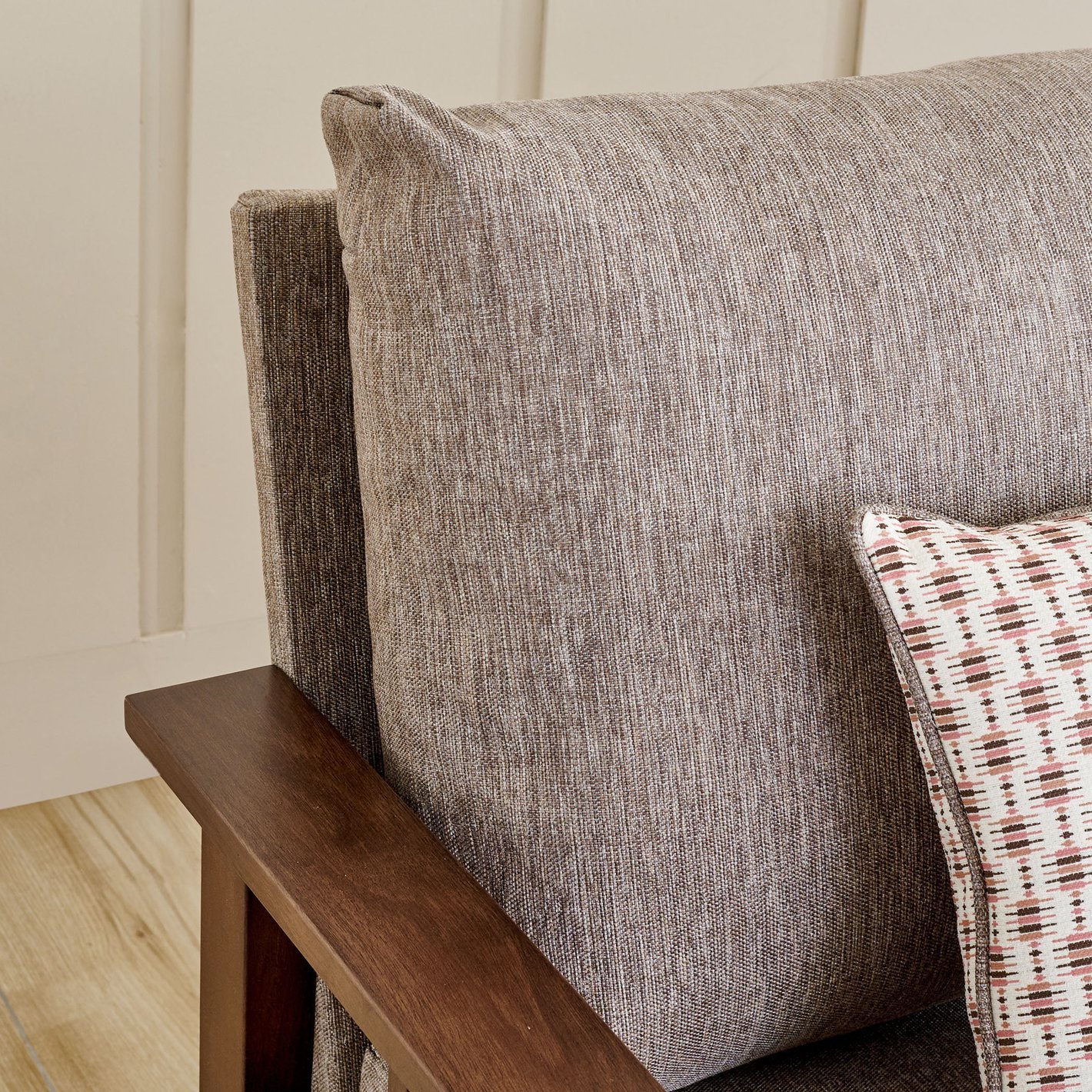 Bring comfort and style to your living space with this 3-seater sofa. The rubber wood frame provides exceptional resilience and long-lasting support. Upholstered in premium polyester fabric, known for its durability and high tensile strength, it ensures both comfort and durability. The sofa includes two patterned cushions, offering extra support and style.