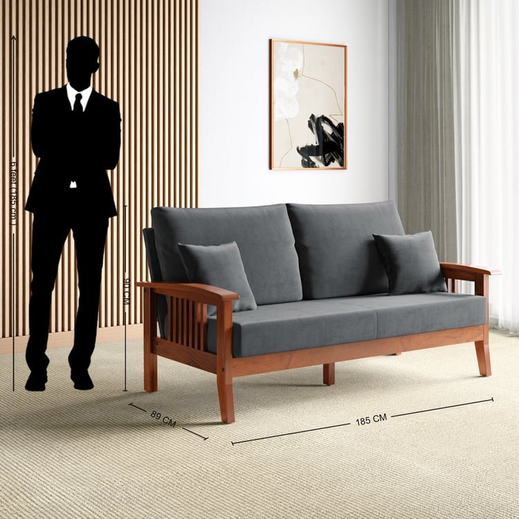 Elevate your space with the perfect blend of elegance and modern comfort with this stylish 3-seater sofa. Designed to complement any decor, it is upholstered in durable polyester fabric with a velvet finish, and padded with PU foam for maximum comfort. Made from resilient rubber wood, the frame is renowned for its strength and fire-resistant properties, making maintenance a breeze. The included cushions enhance its visual charm.