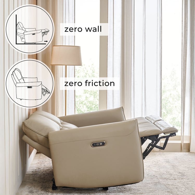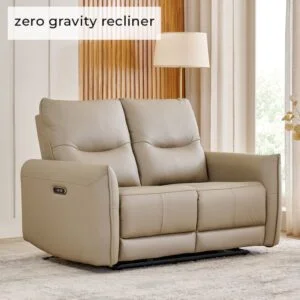 Enhance your living room with this space-saving, electric 2-seater recliner featuring zero gravity functionality that aligns your body for perfect balance and reduces stress. The zero-wall design allows you to recline completely without compromise—sliding just inches from the wall while maximising both space and comfort, and a zero-gap feature that eliminates the traditional recliner’s weak point, creating a unified, fluid support system that adapts perfectly to your body’s every movement. With zero-friction and adaptive lumbar support that moves with you, you can relax without needing to readjust. The durable pine wood and plywood frame, supportive pocket spring coils, and soft foam cushioning ensure long-lasting, plush comfort. The German-made OKIN system allows for quiet and smooth reclining, and the stylish bovine and faux leather upholstery adds a touch of luxury, making this recliner perfect for various
