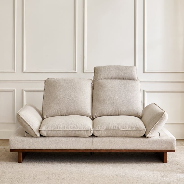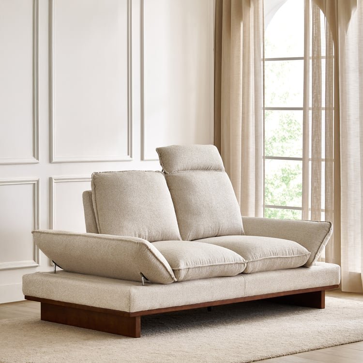 Enjoy versatile comfort with this 2-seater sofa featuring an adjustable backrest and click-clack armrests that easily convert the sofa into a lounge. Crafted with a solid wood base and high-density plywood frame, it includes a removable headrest for added support. Upholstered in durable, recyclable polyester, this sofa combines stylish textured fabric with sturdy construction for lasting comfort and functionality.