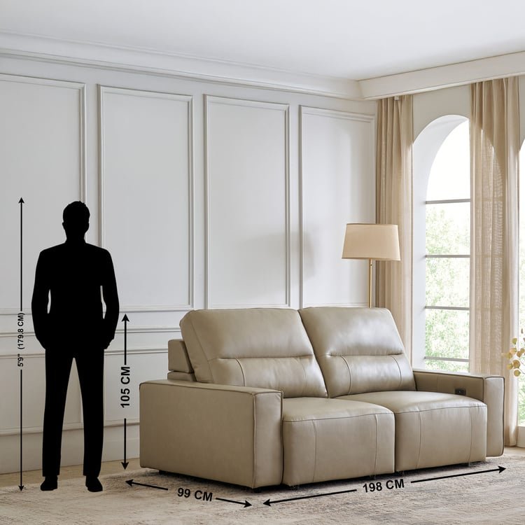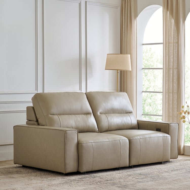 Experience superior comfort and modern style with this motorised 3-seater recliner. Equipped with a smooth, noise-free push-button recliner mechanism, both seats effortlessly convert into loungers. Upholstered in breathable half leather, it offers luxury and durability. The high-density pine wood frame and virgin PU foam ensure structural stability and a smooth finish. Additional features include a built-in USB charging port and elegant piping armrests, adding sophistication to any living room.