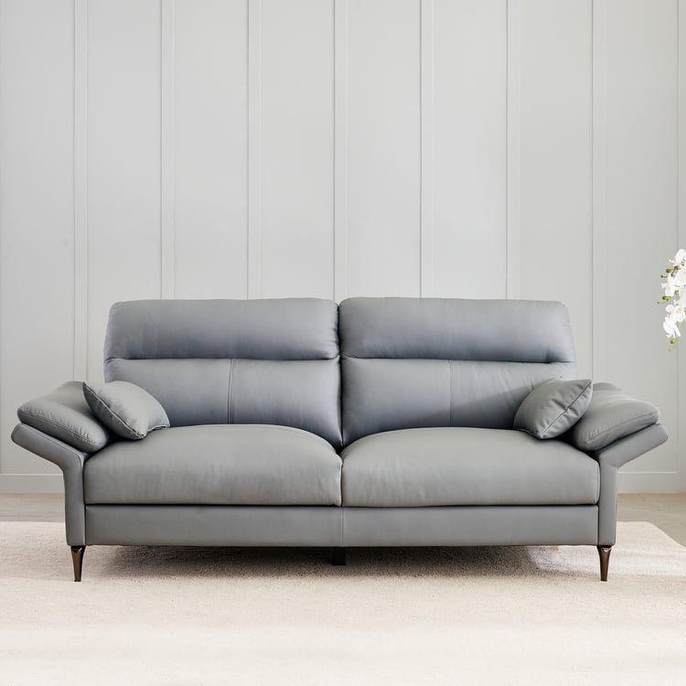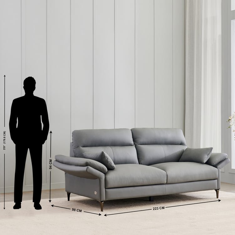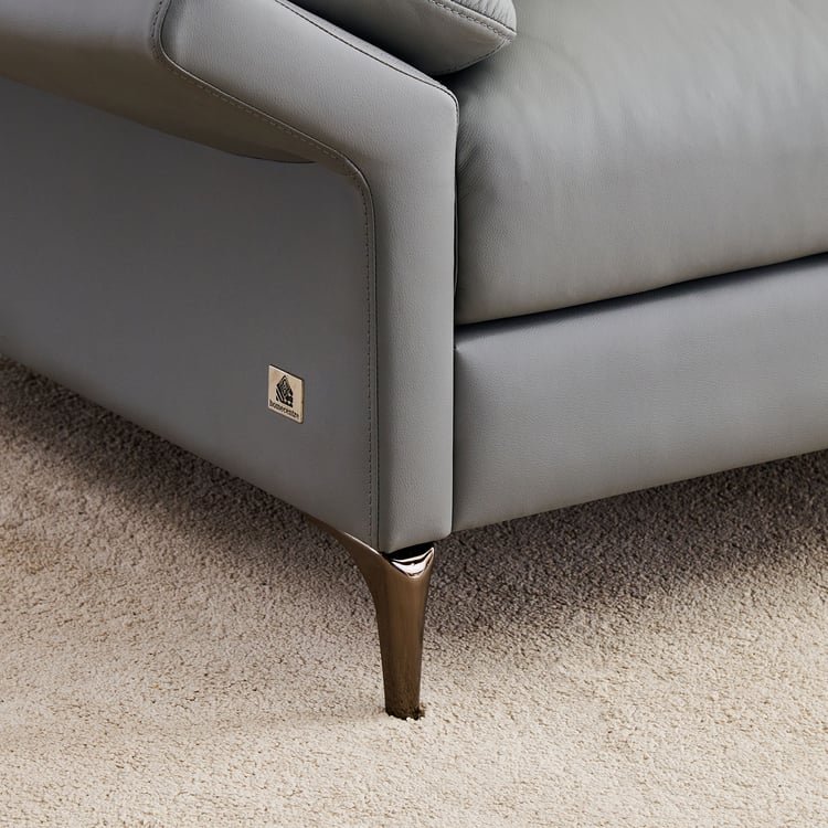 Combining luxury and durability, this 3-seater sofa transforms any room into an inviting den. Its sturdy frame is constructed from high-density plywood, hardwood, and virgin PU foam, offering both structural stability and a smooth finish. It features a mix of premium bovine leather on body-touching areas and faux leather on the rest. Designed for comfort, the sofa includes full-core HDR foam for firm seat support, webbing straps, and zig-zag construction with nylon webbing and steel springs for lasting resilience. The electroplated metal legs not only provide a sleek, modern look but also resist tarnishing and corrosion, ensuring long-lasting durability. The cushions provide a cosy touch.