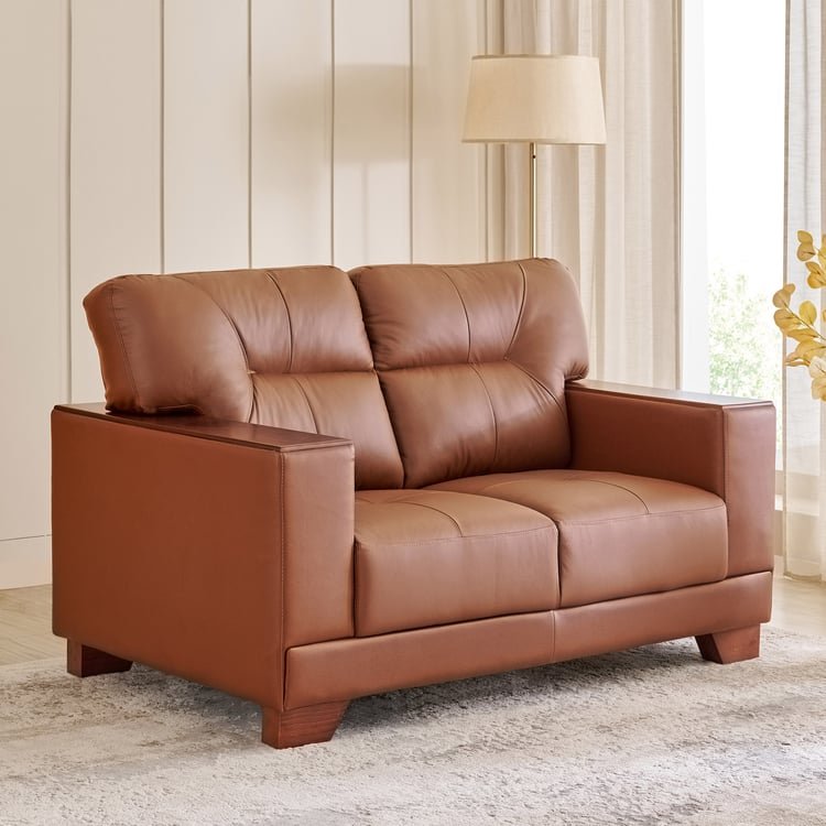Bring an air of sophistication to your space with this 2-seater sofa. The pinewood frame, being lightweight and resistant to shock, ensures stability. This elegant design is supported by a high-quality polyfiber backrest for added comfort. Upholstered with plush leather on the body-touching parts and faux leather on the rest, this sofa with wide track arms offers an elegant look.