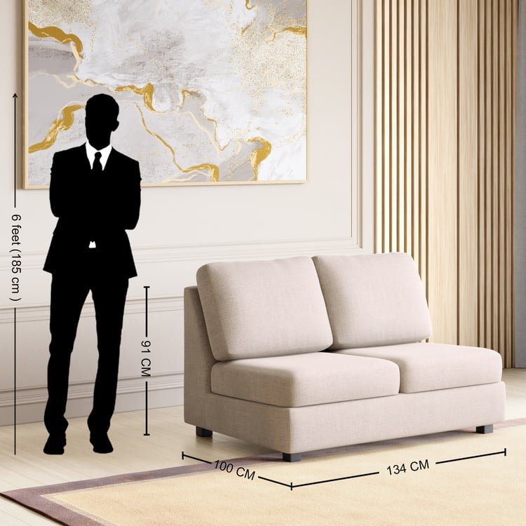 Experience unmatched comfort and versatility with this 2-seater armless sofa. Upholstered in high-quality polyester fabric, this sofa is antimicrobial and anti-allergic, ensuring a clean and safe environment. The frame is constructed from pretreated pinewood, known for its stability, elasticity, and lightweight properties, making it both economical and durable. The seat features a fabric covering, while the back is constructed with foam for exceptional support. The seat front is padded with high-density PU foam, and the wide and deep seating design enhances lounging comfort. The back pillow is filled with polyfill, providing plush comfort. The seat construction includes durable zig-zag springs and aluminium webbing, ensuring long-lasting durability. This modular sofa allows customers to create their own combinations with this collection. Manufactured in a sophisticated facility with state-of-the-art machinery, this 2-seater sofa guarantees a consistent finish and high durability.